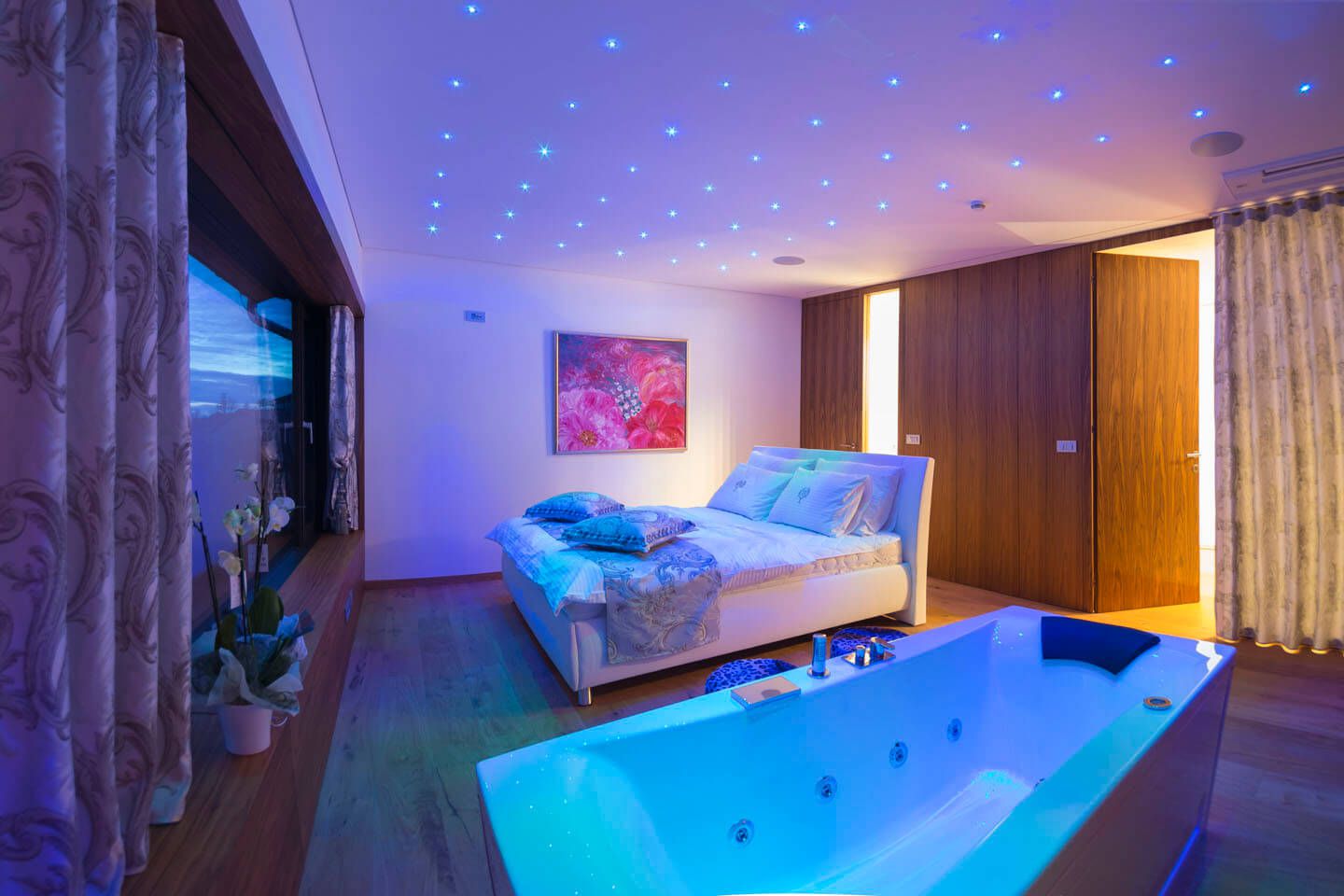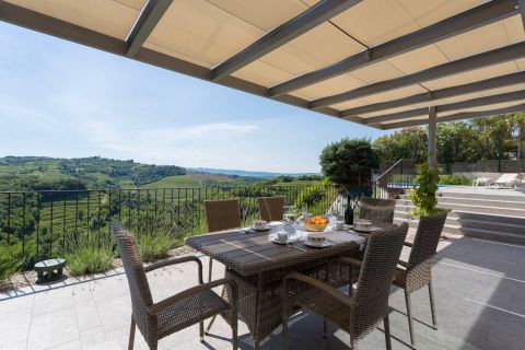 Imagine an amazingly beautiful and serene place wrapped up in gently rolling hills covered with thousands of olive trees, dreamy cherry orchards and leafy vineyards. Imagine that you are sleeping on cloud-like mattresses in a peaceful and elegant private home. This is luxury villa Imagine with pool in the heartland of the green and pleasant land of Slovenia. You are pampered from the moment you arrive to this fabulous three bedroom, three bathroom country holiday home with a gorgeous infinity pool and sauna, a cosy library and sumptuous beds, and a wine cellar! Those views from the house and pool will rejuvenate your eyes and the fresh air is scented with ozone! The luxury family villa Imagine is simply perfection - every detail is beautifully finished. Look at the neatly cobbled entrance patio, the pergola with climbing plants as you enter the house, the Juliet balcony, and those gorgeous granite floor tiles in the kitchen! You get your own picnic spot in the olive grove. The villa is in essence an old Slovenian farm with history and a sense of well-being, lovingly kept in the family who has now turned it into a five star luxury holiday farmhouse with all mod cons. WiFi and air conditioning are available throughout. The whole villa can be controlled via a smart tablet.